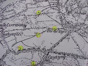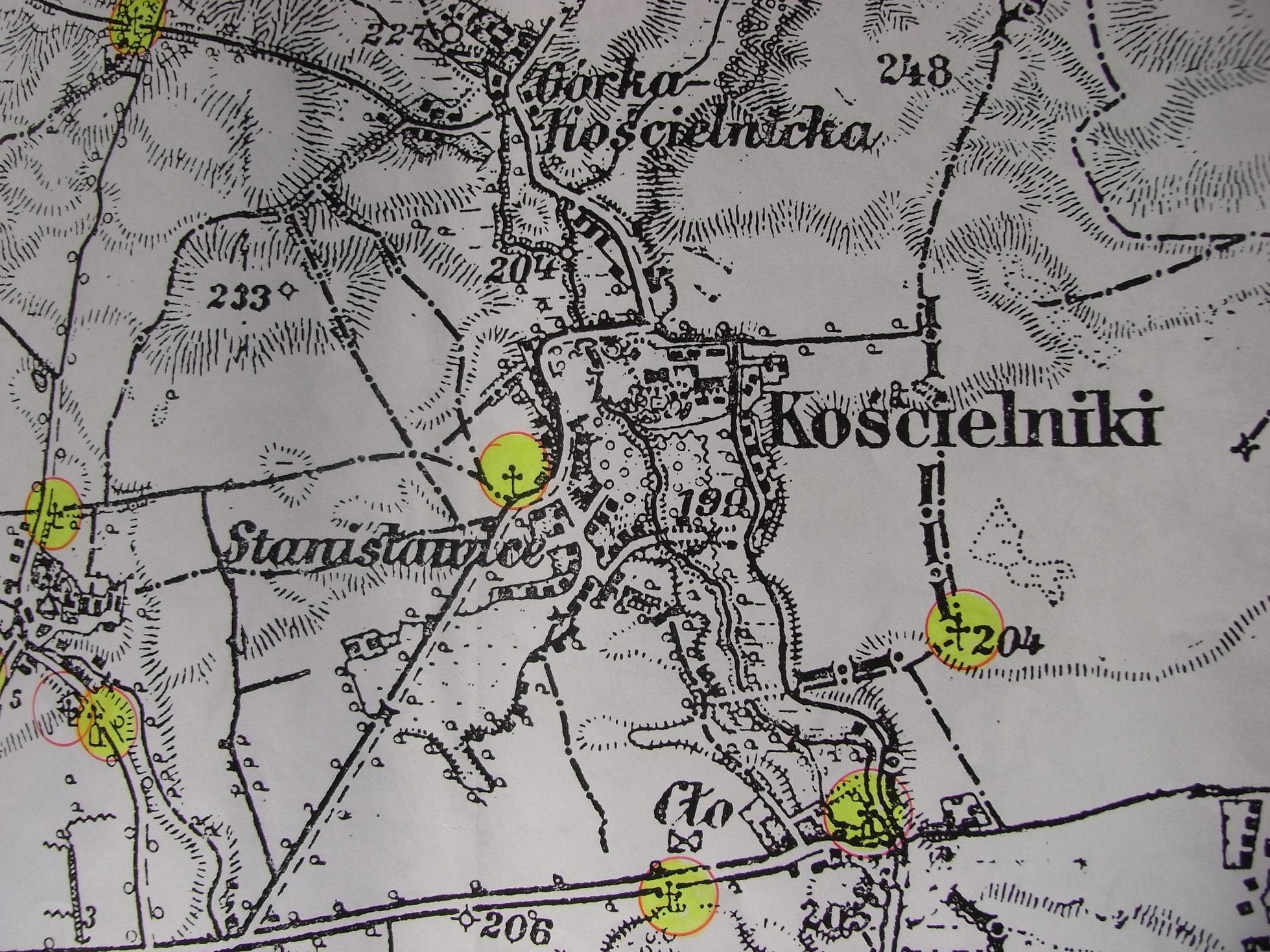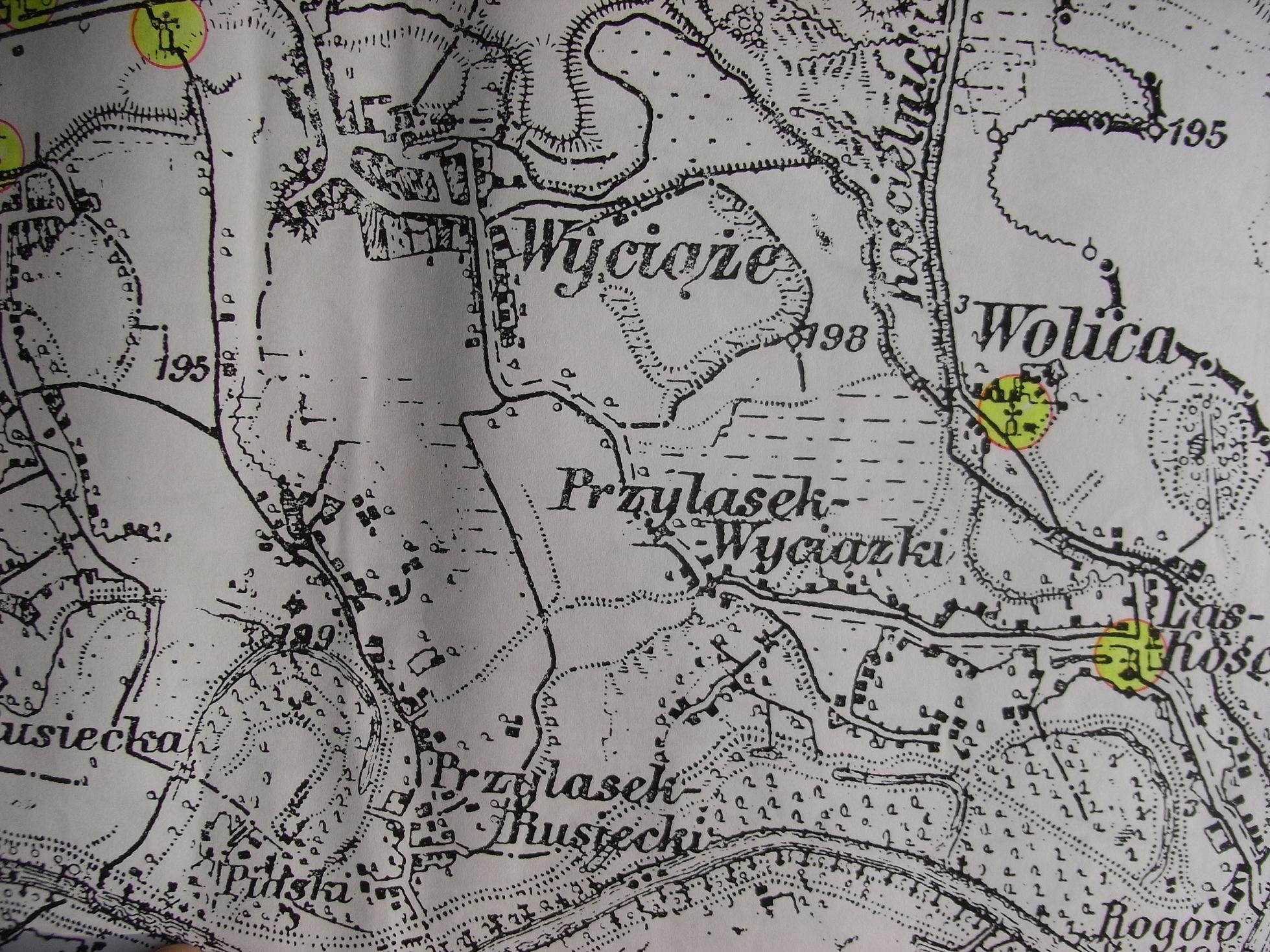 fragment mapy obejmujący miejscowości: Kościelniki, Wyciąże, Wolicę.