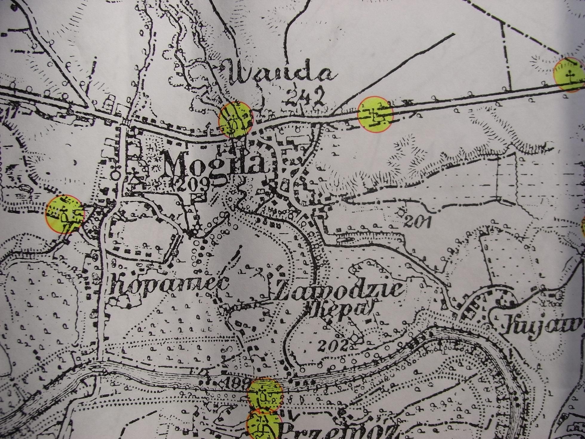 wieś Mogiła, Kopiec Wandy, Kopcowy Staw /obecnie Suche Stawy - hala i stadion Hutnika/ - mapa znaleziona w internecie i przekazana mi przez Pana Waldemara Cyganika.