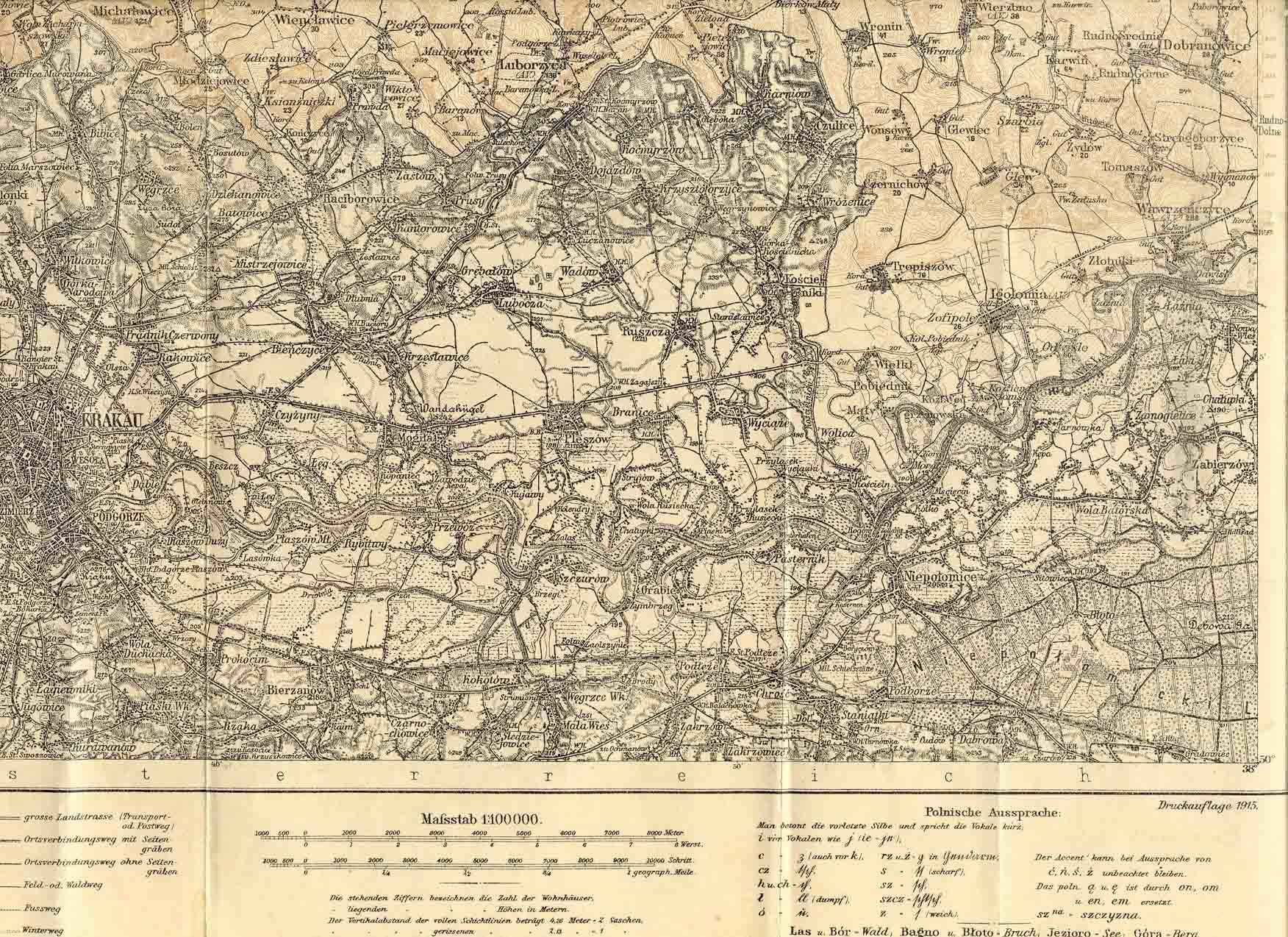 1915 - Galicja - okolice Krakowa - frag. mapy