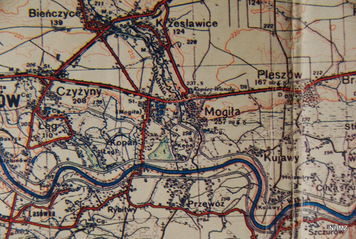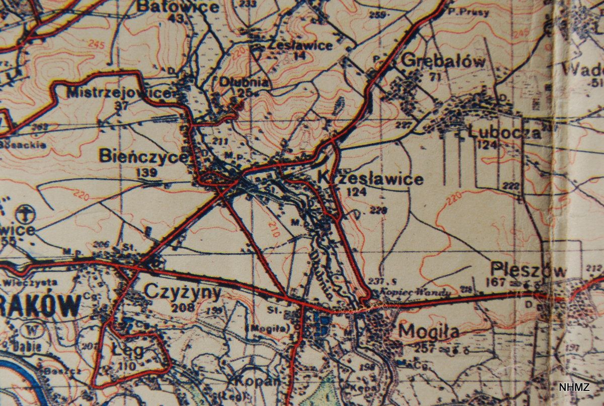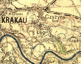 fragment mapy wydanej przez Centrum Kartograficzne w 2002 r. na podstawie mapy operacyjnej KRAKÓW ark. 74, wyd. przez Wojskowy Instytut Geograficzny w 1935 r.