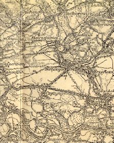 fragment mapy wydanej przez Wojskowy Instytut Geograficzny, Warszawa; opracowano w r. 1933-34 na podstawie mapy sprawdzonej w r. 1932.
